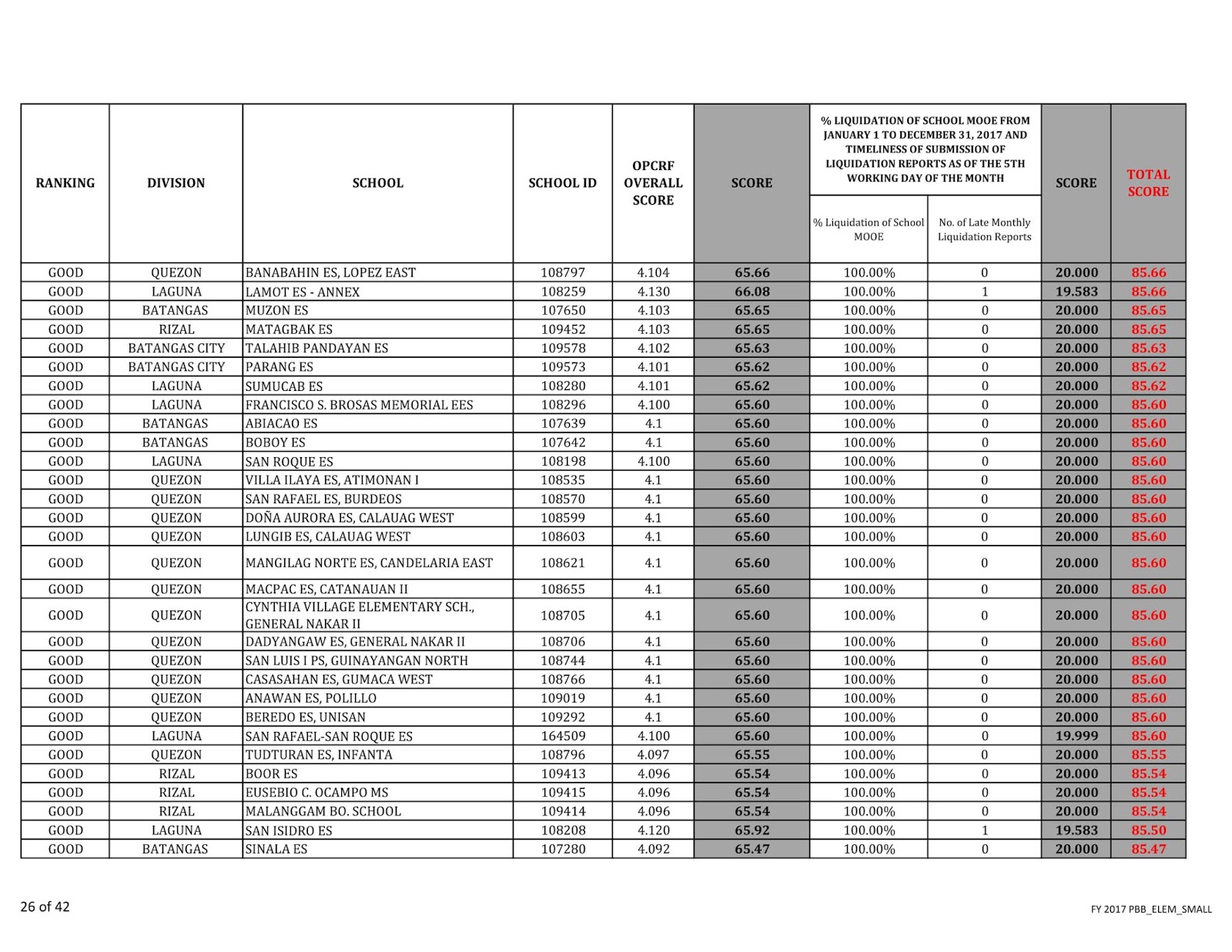 • Report on Schools Rankings - PBB Update!