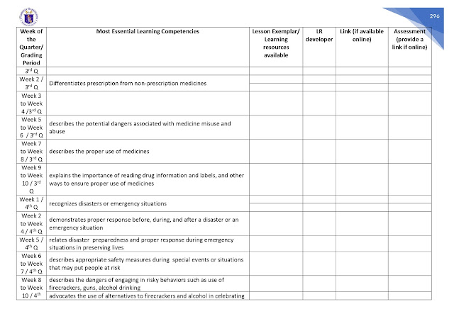Most Essential Learning Competencies in MAPEH SY 2020-2021